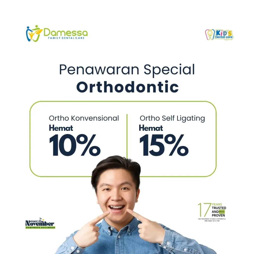 Tahun baru adalah waktu yang tepat untuk memulai resolusi baru, termasuk merawat kesehatan gigi dan senyum Anda. Agar Anda bisa tampil percaya diri sepanjang tahun, Damessa Family Dental Care hadir dengan Penawaran Spesial Advanced Treatment yang tak terbatas hanya untuk bulan November-Desember, tapi juga sebagai langkah awal menuju senyum yang lebih sehat dan indah di tahun depan!